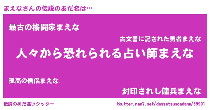 | ヒーロー風カッコイイあだ名 | 『正義の使者まえな』『スーパーマエナ』 |