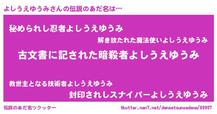 | ヒーロー風カッコイイあだ名 | 『ネオヨシウエユウミ』『仮面ヨシダー』 |