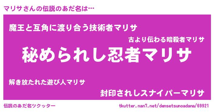| ヒーロー風カッコイイあだ名 | 『ウルトラマリサマン』『愛の使者マリサ』 |