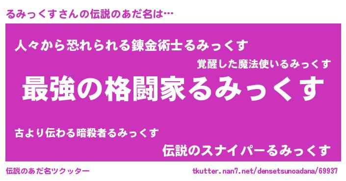 | 女子向けラノベタイトル風あだ名 | 『るみっくすの婚約者』 |