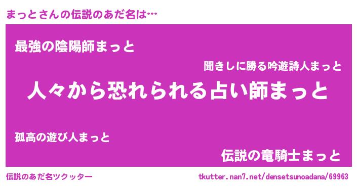 | 意味不明あだ名 | 『めかぶ科まっと属』『自称まっと』 |