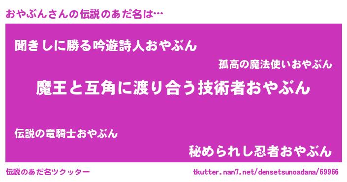 | ヘコむあだ名 | 『おやぶん(笑)』『酢こんぶ』 |