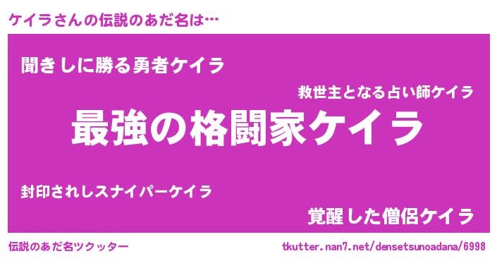 | ヒーロー風カッコイイあだ名 | 『ウルトラケイラマン』『ネオケイラ』 |