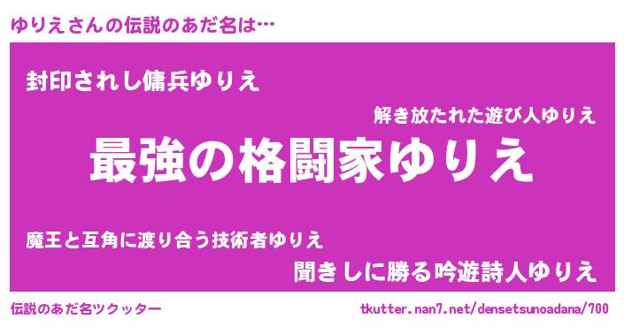 | ヒーロー風カッコイイあだ名 | 『ウルトラゆりえマン』『スーパーユリエ』 |