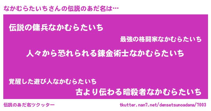 | 意味不明あだ名 | 『自称なかむらたいち』 |