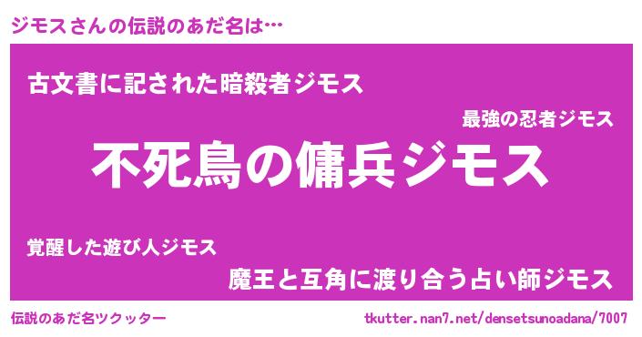 | 女子向けラノベタイトル風あだ名 | 『闇のジモス』『ジモス恋絵巻』 |