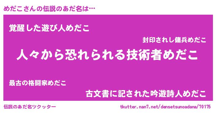 | ヘコむあだ名 | 『めだお』『めだこ(苦笑)』『つくし』 |