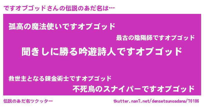 | 男性向けラノベタイトル風あだ名 | 『ですオブゴッドという概念が存在しない退屈な世界 』 |