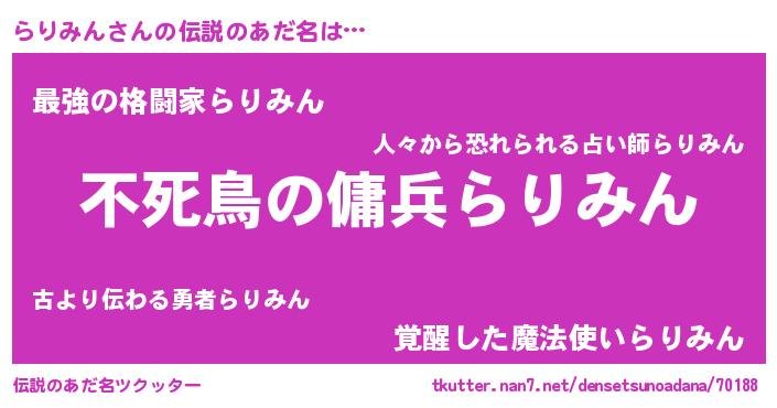 | ヒーロー風カッコイイあだ名 | 『スーパーラリミン』『幻影騎士ラリ』 |