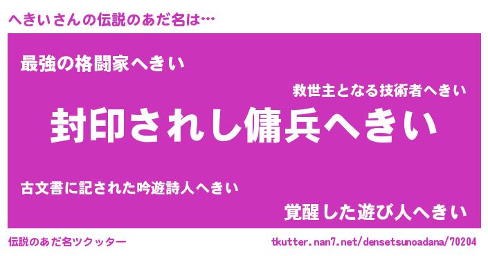 | 胡散臭い通販商品みたいなあだ名 | 『億万長者になれる水晶球…その名も「へきい」』 |