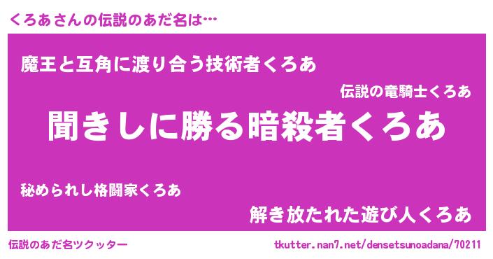 | 意味不明あだ名 | 『永久保存くろあ』『自称くろあ』 |