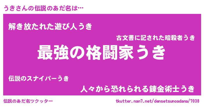 | 男性向けラノベタイトル風あだ名 | 『この素晴らしい世界にうきを!』 |