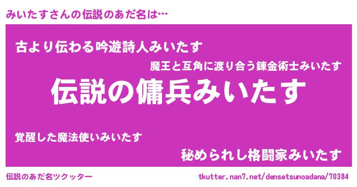 | 男性向けラノベタイトル風あだ名 | 『みいたすの憂鬱』『魔弾の王とみいたす』 |