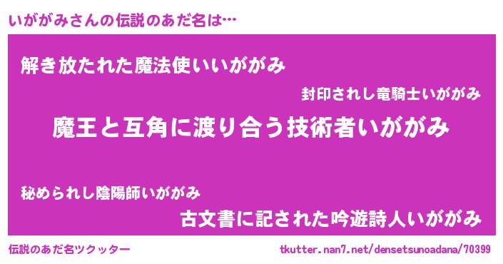 | 女子向けラノベタイトル風あだ名 | 『闇のいががみ』『いががみ恋絵巻』 |
