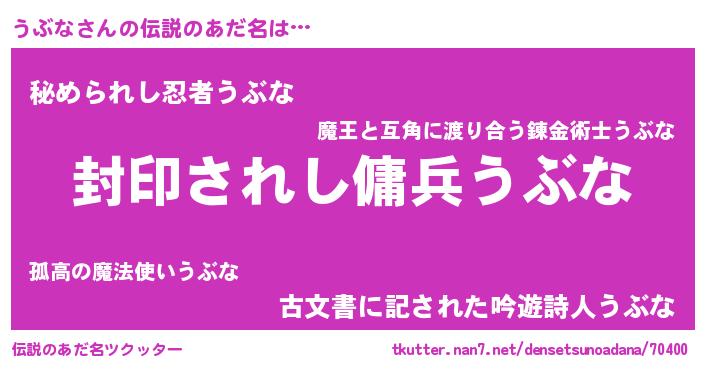 | 胡散臭い通販商品みたいなあだ名 | 『億万長者になれる水晶球…その名も「うぶな」』 |