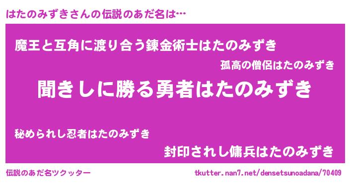 | ヒーロー風カッコイイあだ名 | 『ネオハタノミズキ』『幻影騎士ハタ』 |