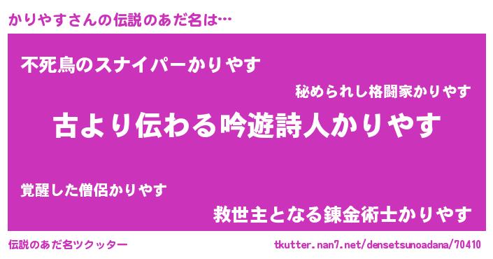 | 男性向けラノベタイトル風あだ名 | 『かりやすという概念が存在しない退屈な世界 』 |