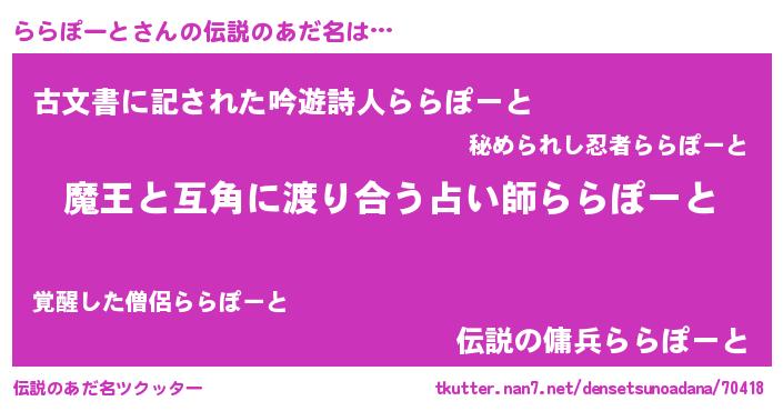 | ポケモン風あだ名 | 『ララゴンZ』『メロラッラ』 |