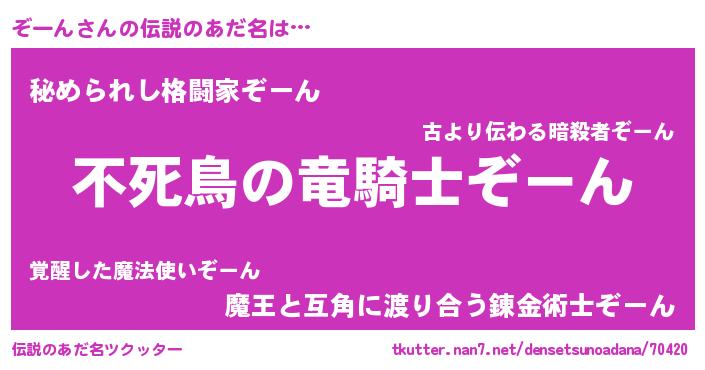 | ファンタジー風あだ名 | 『ゾーフェル』『エターナルゾーンー』 |