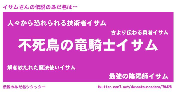 | ヒーロー風カッコイイあだ名 | 『スーパーイサム』『友情の使者イサム』 |