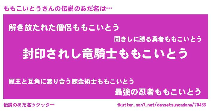 | 胡散臭い通販商品みたいなあだ名 | 『億万長者になれるブレスレット…その名も「ももこいとう」』 |