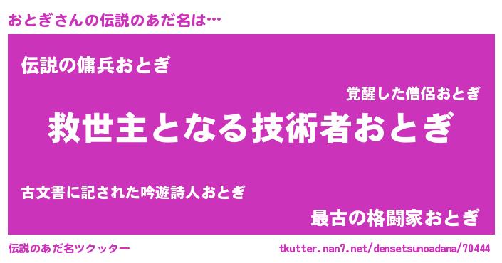 | 欧米人風あだ名 | 『ダニエルおとぎ』『マイケルおとぎ』 |