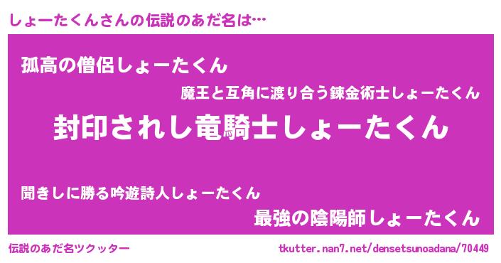 | 男性向けラノベタイトル風あだ名 | 『ショータクンアートオンライン』 |