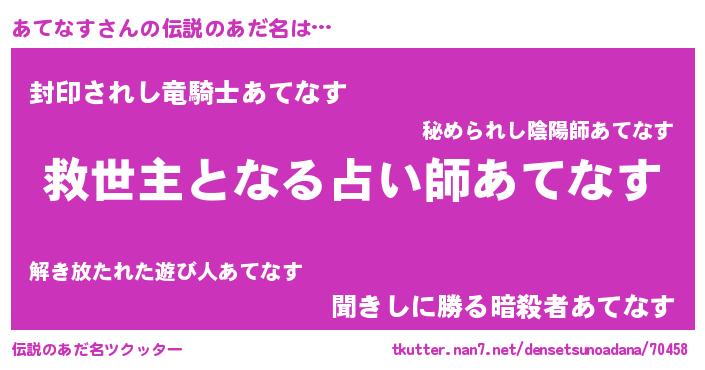 | ヒーロー風カッコイイあだ名 | 『慈愛の使者あてなす』『仮面アテダー』 |