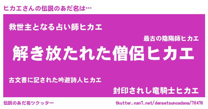 | ヒーロー風カッコイイあだ名 | 『銀牙騎士ヒカ』『天空の使者ヒカエ』 |