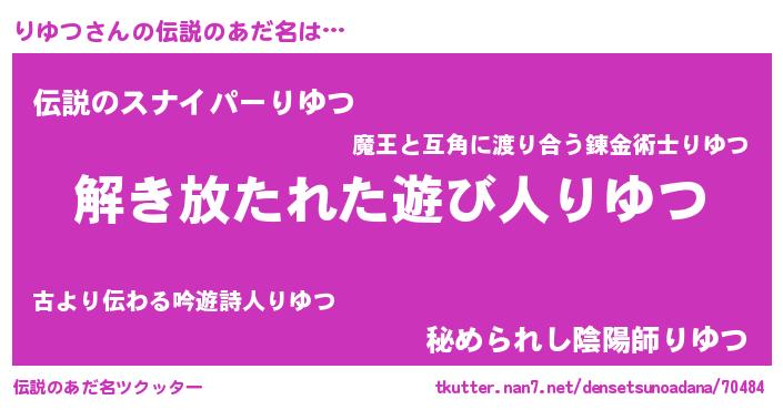 | 女子向けラノベタイトル風あだ名 | 『りゆつの卵を拾いまして』 |