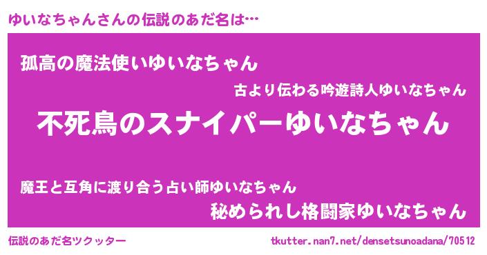 | 女子向けラノベタイトル風あだ名 | 『闇のゆいなちゃん』 |