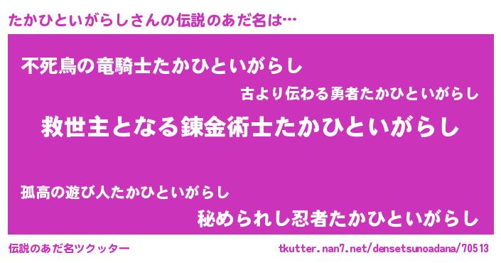 | ヒーロー風カッコイイあだ名 | 『天空の使者たかひといがらし』 |