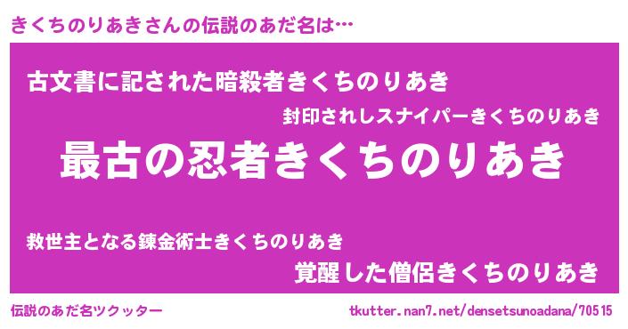 | 意味不明あだ名 | 『きくちのりあきフォーエバー』 |