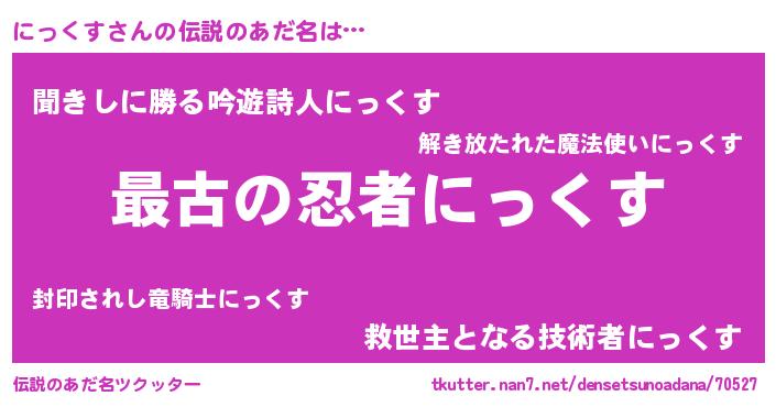 | 意味不明あだ名 | 『にっくすフォーエバー』 |
