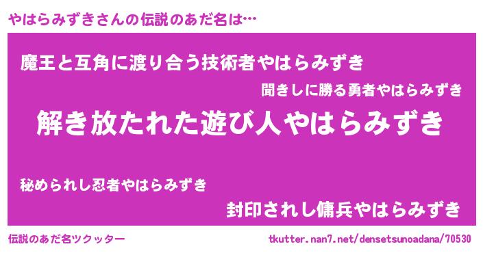 | ヒーロー風カッコイイあだ名 | 『仮面ヤハダー』『幻影騎士ヤハ』 |