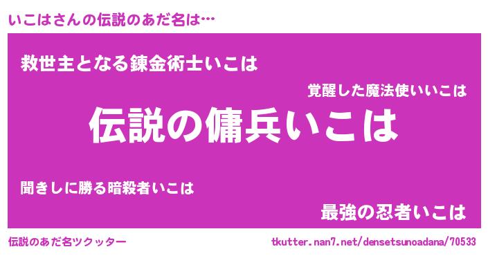 | 男性向けラノベタイトル風あだ名 | 『イコハスレイヤー』 |