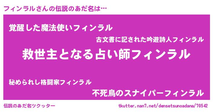 | 男性向けラノベタイトル風あだ名 | 『ノーゲーム・ノーフィンラル』 |