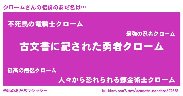 | 意味不明あだ名 | 『永久保存クローム』『自称クローム』 |