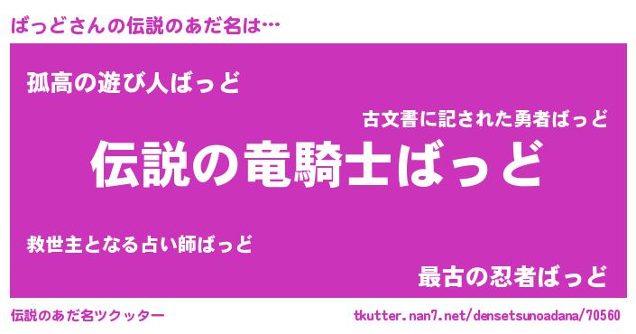 | ヒーロー風カッコイイあだ名 | 『スーパーバッド』『炎刃騎士バッ』 |