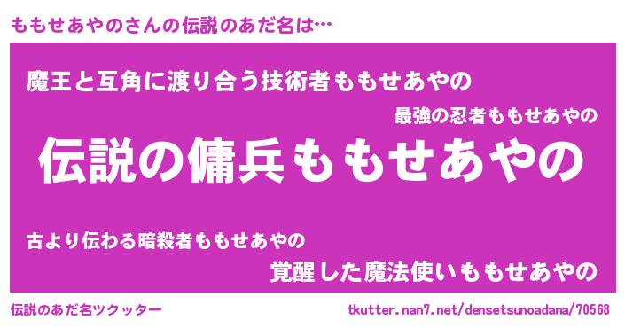 | ヒーロー風カッコイイあだ名 | 『スーパーモモセアヤノ』『炎刃騎士モモ』 |