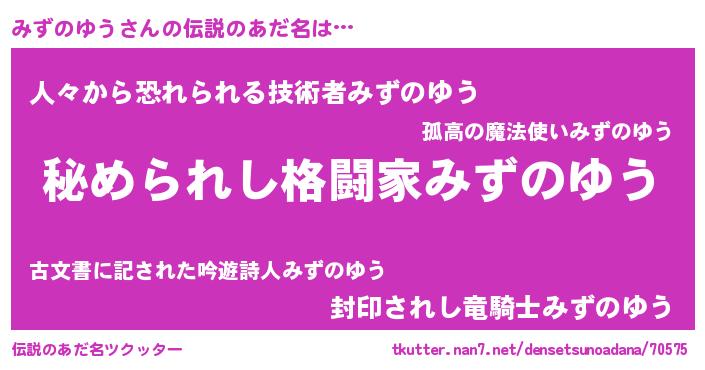 | ファンタジー風あだ名 | 『エターナルミズノユウー』『ゼミズトゥ』 |