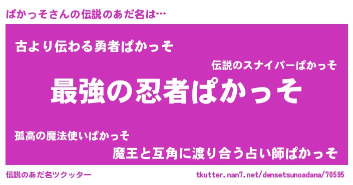 | 意味不明あだ名 | 『ぱかっそフォーエバー』『自称ぱかっそ』 |