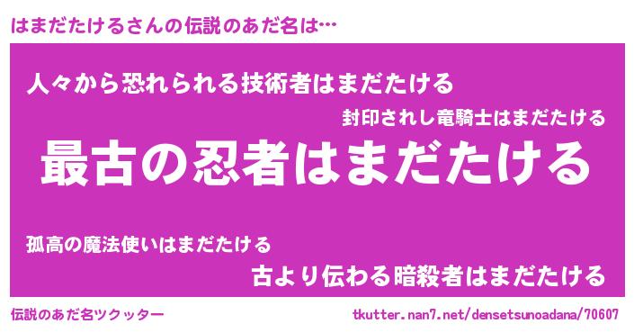 | 意味不明あだ名 | 『はまだたけるフォーエバー』 |