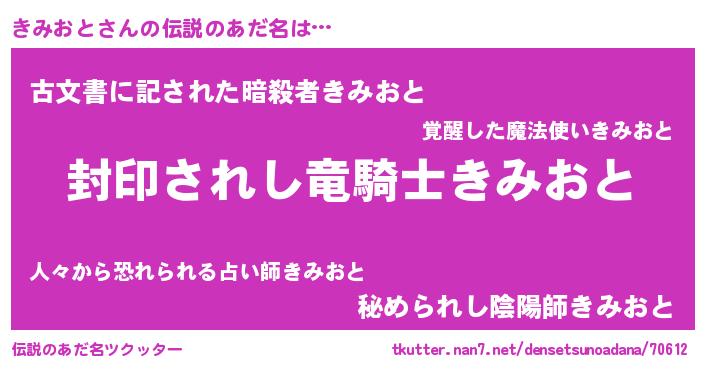 | ヒーロー風カッコイイあだ名 | 『スーパーキミオト』『ネオキミオト』 |