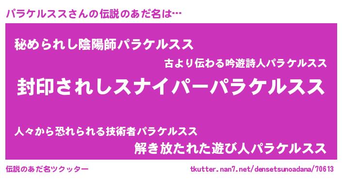 | ヒーロー風カッコイイあだ名 | 『最強戦士パラケルスス』『仮面パラダー』 |