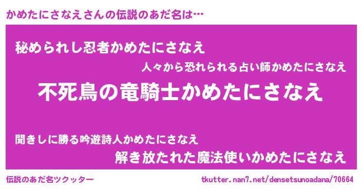 | 男性向けラノベタイトル風あだ名 | 『カメタニサナエアートオンライン』 |