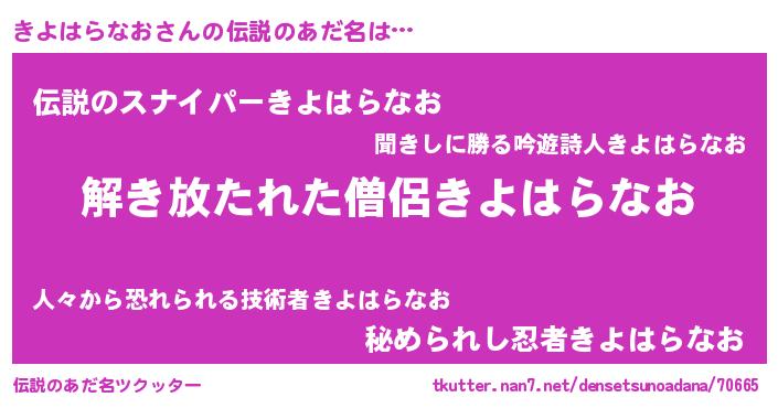 | 意味不明あだ名 | 『とにかく怪しいきよはらなお』 |