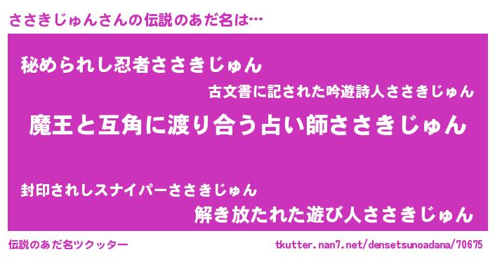 | ヒーロー風カッコイイあだ名 | 『愛の使者ささきじゅん』『幻影騎士ササ』 |