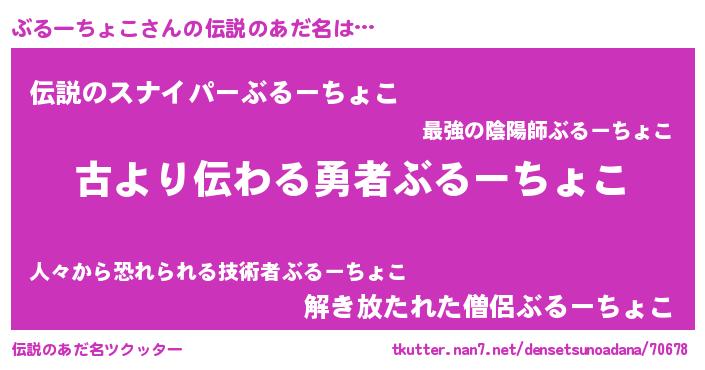 | ヘコむあだ名 | 『ぶるーちょこ(震え声)』『ぶるっふぃ~』 |