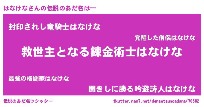 | ヒーロー風カッコイイあだ名 | 『究極戦士ハナケナ』『スーパーハナケナ』 |